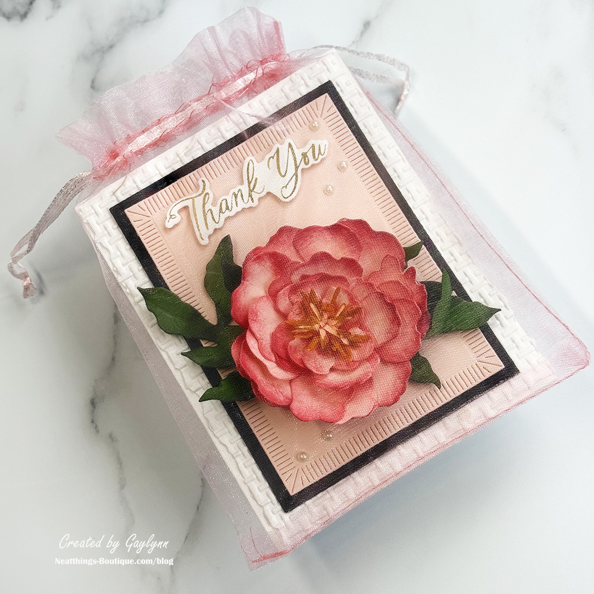 Welcome to my blog, Gaylynn here. Here is my 3D peony paper flower card and ways to deliver thick cards. To make this, I made a 3D peony flower ahead of time for today's card, along with a gold hot foil sentiment. The flower was fun to make using die-cuts and shaping. Because the peony was used on a greeting card, I share ways to present thick finished cards for hand delivering and for mailing. I used products from the Peonies dies set and a sentiment press and foil plate. I included the project supplies and a short video below of the assembly. As always, use what you have to make similar cards.