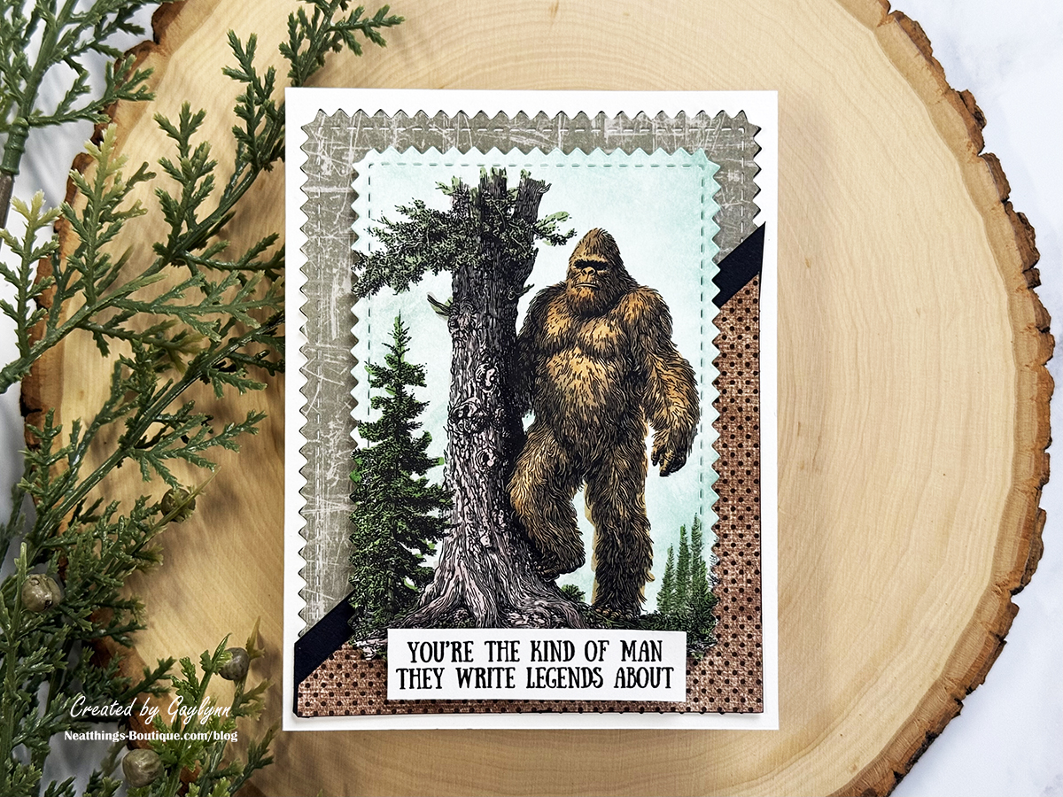 Bigfoot sasquatch masculine card making ~ Copic markers & paper layers