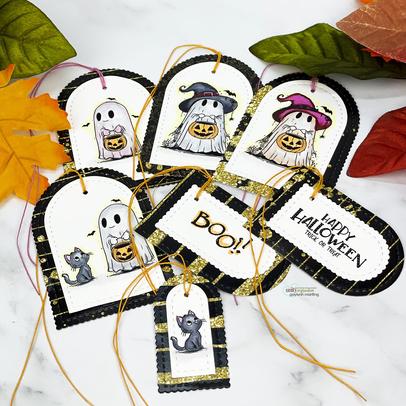 Hey there. Gaylynn here. Today, I decided to get a jump start on treat bag tags for Halloween trick-or-treat visitors. This is a set of super fun Halloween ghost treat tags or gift tags. They also make great party favor decorations and toppers. This is a mix of stamping, Copic marker coloring and patterned paper cuts.