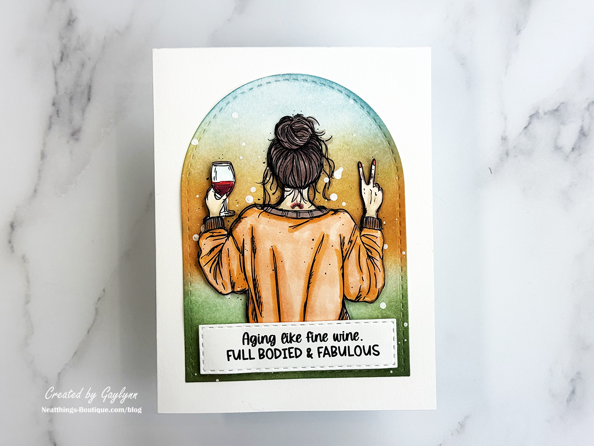 Hi there and welcome to my blog. Here, I am sharing a peace sign girl card with a little attitude. This one was fun to make. I decided to add ink blending for background color and then layer the girl for dimension and texture. I used a few techniques like ink blending, Copic marker coloring, fussy cutting, stamping and splattering. I tried to keep the card looking clean by keeping everything contained inside the arch layer. In today's project, I focused on the stamp set by Unity Stamp Company called Hot Flash Happy Hour. The supplies, steps and short video are below.